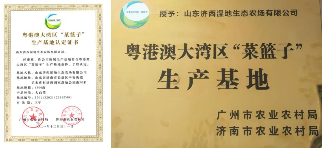 近日,山東濟西濕地生態(tài)農場有限公司通過粵港澳大灣區(qū)“菜籃子”生產基地認定,并被授予認定證書和基地牌匾,標志著濟西農業(yè)高質量的特色農產品獲得“通行證”進入粵港澳大灣區(qū)的“交易大廳”,為公司農產品開拓粵港澳市場奠定了基礎。
