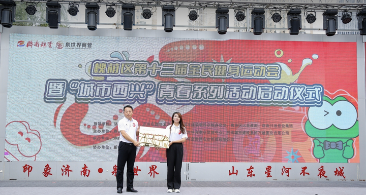 活動現(xiàn)場,濟南市體育局群體處處長楊本升為印象濟南·泉世界授予“濟南市青春活力示范街區(qū)”,濟南城市建設(shè)集團萬融置業(yè)有限公司與濟南日報報業(yè)集團體育事業(yè)發(fā)展中心簽署共同打造“城市西興青春系列活動”合作書。