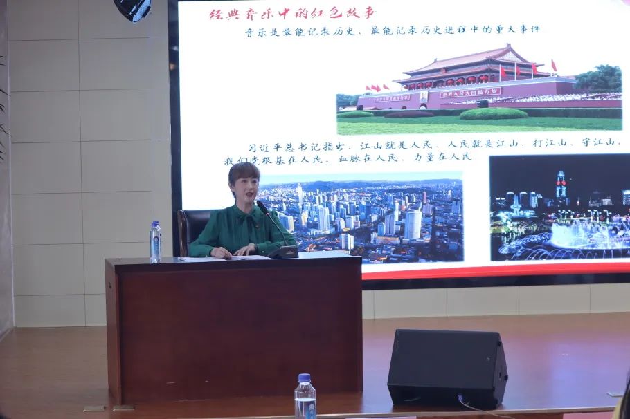 同時,本次學(xué)習(xí)還特別邀請到濟(jì)南市青少年宮團(tuán)隊帶來音樂黨課《經(jīng)典音樂中的紅色故事》。課程用“理論授課+音樂作品展演”的形式,以時間軸串聯(lián)講解經(jīng)典音樂著作。黨課分《送別》與震驚中外的五四運(yùn)動、《國民革命歌》與轟轟烈烈的大革命、《松花江上》與全民族抗戰(zhàn)的開始、《軍民大生產(chǎn)》與根據(jù)地的艱苦斗爭、《你是燈塔》與新中國的成立、《唱支山歌給黨聽》與社會主義建設(shè)的蓬勃開展、《春天的故事》與改革開放等七個部分,一首首耳熟能詳?shù)囊魳纷髌芬元?dú)唱、合唱、二胡獨(dú)奏、大提琴演奏、舞蹈等藝術(shù)形式重新演繹,歷史畫卷伴隨音樂徐徐展開,在浸潤式教育中傳承紅色基因,引導(dǎo)學(xué)員感受藝術(shù)魅力、匯聚精神力量、激發(fā)前行動力。