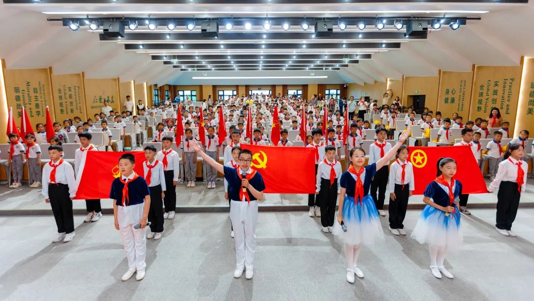 活動(dòng)現(xiàn)場(chǎng),與會(huì)嘉賓們?yōu)樾氯腙?duì)的少先隊(duì)員們佩戴了紅領(lǐng)巾,為新建中隊(duì)授中隊(duì)旗,見證了黨、團(tuán)、隊(duì)三旗傳遞,徐冬梅為孩子們送上了“六一”寄語,建設(shè)集團(tuán)為孩子們贈(zèng)送了入隊(duì)成長(zhǎng)禮物。