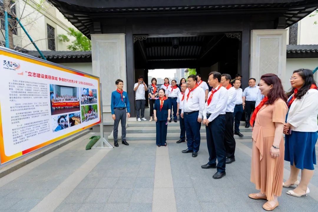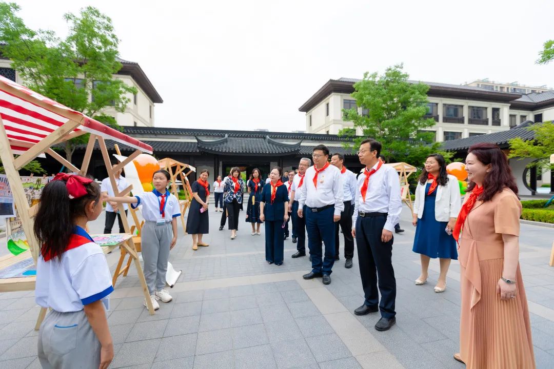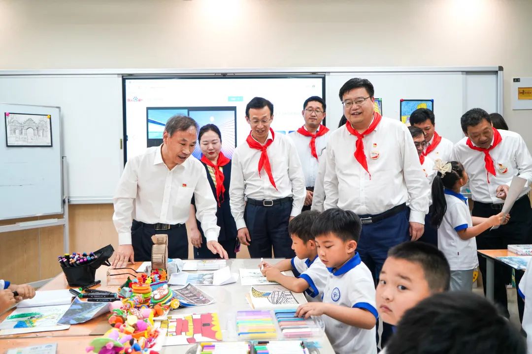 活動(dòng)結(jié)束后,孫常建一行在楊柳春風(fēng)學(xué)校進(jìn)行了實(shí)地參觀調(diào)研,了解了書香校園建設(shè)活動(dòng),并與孩子們進(jìn)行了親切交流。孩子們熱情洋溢地介紹了“槐蔭少年說”黨團(tuán)隊(duì)一體化品牌建設(shè)活動(dòng)、“我是黃河岸邊好少年”黃河文化項(xiàng)目化學(xué)習(xí)特色課程、“我眼中的康養(yǎng)名城、活力槐蔭”畫展和手工展、“家住槐蔭‘育’見成長(zhǎng)”教育品牌、學(xué)校校訓(xùn)和南北融合辦學(xué)理念等情況,并進(jìn)行了古箏、寫生、經(jīng)典誦讀等美育教育特色活動(dòng)表演,美術(shù)社團(tuán)、舞蹈社團(tuán)、合唱團(tuán)、足球社團(tuán)、啦啦隊(duì)的成員代表們進(jìn)行了成果展示。