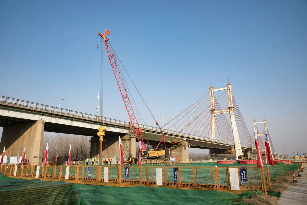 黃河流域濟(jì)南段,濟(jì)南黃河公路大橋東側(cè),黃河上第一座不等跨并橋建設(shè)工程,同時(shí)也是黃河上跨徑最大、鋼橋總長最長的公軌分層合建橋梁,濟(jì)南黃河公路大橋改擴(kuò)建工程正在有序推進(jìn)工程建設(shè)。1982年建成的當(dāng)時(shí)亞洲跨徑最大的濟(jì)南黃河公路大橋,在服役41年之后,見證著又一次“歷史跨越”。