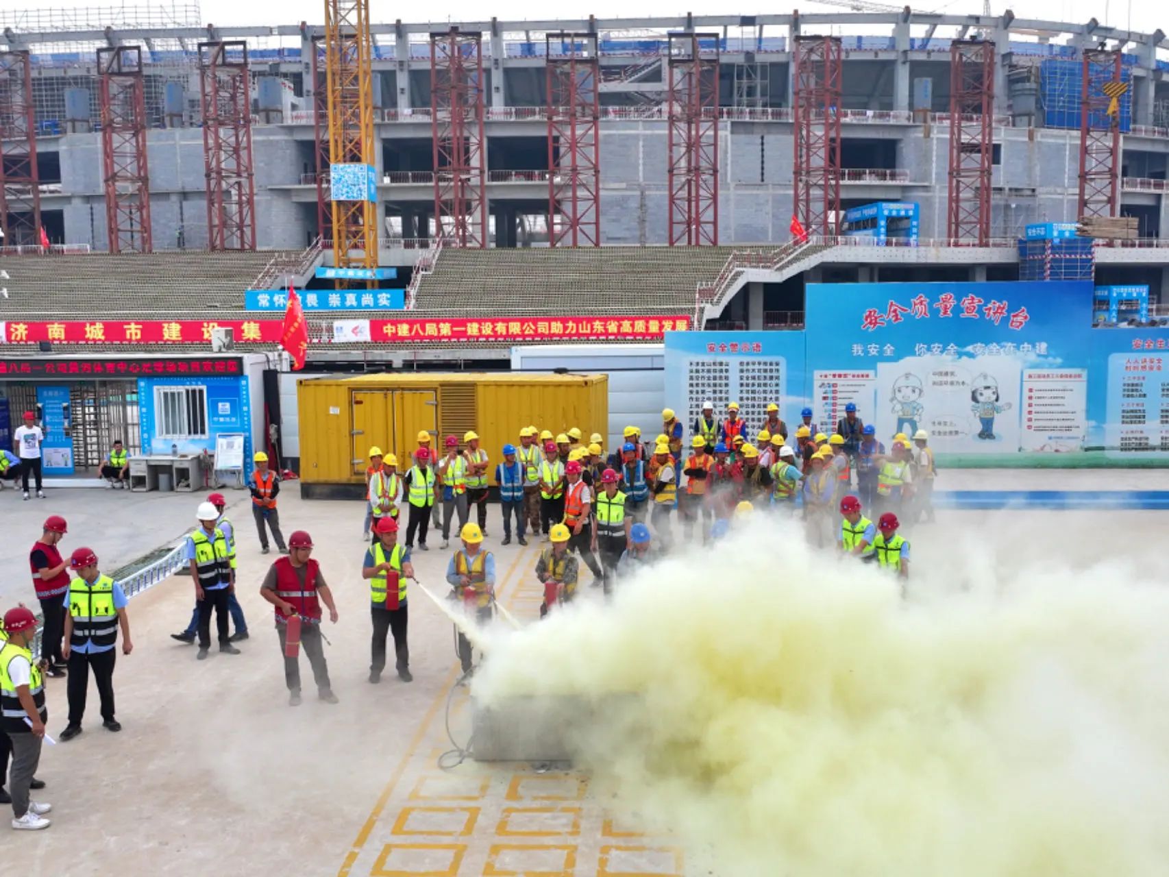 為了進(jìn)一步筑牢消防安全防線,全面提升消防救援隊(duì)伍的滅火救援能力,提高全員應(yīng)對(duì)復(fù)雜環(huán)境下的火災(zāi)處置能力,近日,集團(tuán)工程四部在黃河體育中心專業(yè)足球場(chǎng)項(xiàng)目組織開(kāi)展2023年秋季消防應(yīng)急演練活動(dòng)。
