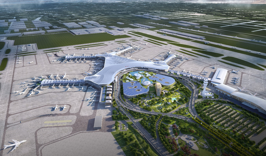 作為建設(shè)交通強(qiáng)國山東示范區(qū)的重大標(biāo)志性、引領(lǐng)性工程,濟(jì)南機(jī)場二期改擴(kuò)建工程新建60萬㎡T2航站樓,與17萬㎡現(xiàn)T1航站樓組成近80萬㎡航站樓,新建2條3600米跑道,與現(xiàn)跑道形成3跑道運(yùn)行,新建38萬㎡綜合交通中心,引入濟(jì)濱高鐵和3條地鐵,集成機(jī)場、高鐵、軌道交通、高速公路、城市快速路等多種交通方式于一體,實(shí)現(xiàn)零距離換乘、無縫化銜接。項(xiàng)目建成后,將能夠滿足近期年旅客吞吐量5500萬人次、貨郵吞吐量52萬噸保障需求,成為“國內(nèi)領(lǐng)先、國際一流”的現(xiàn)代化綜合交通樞紐。