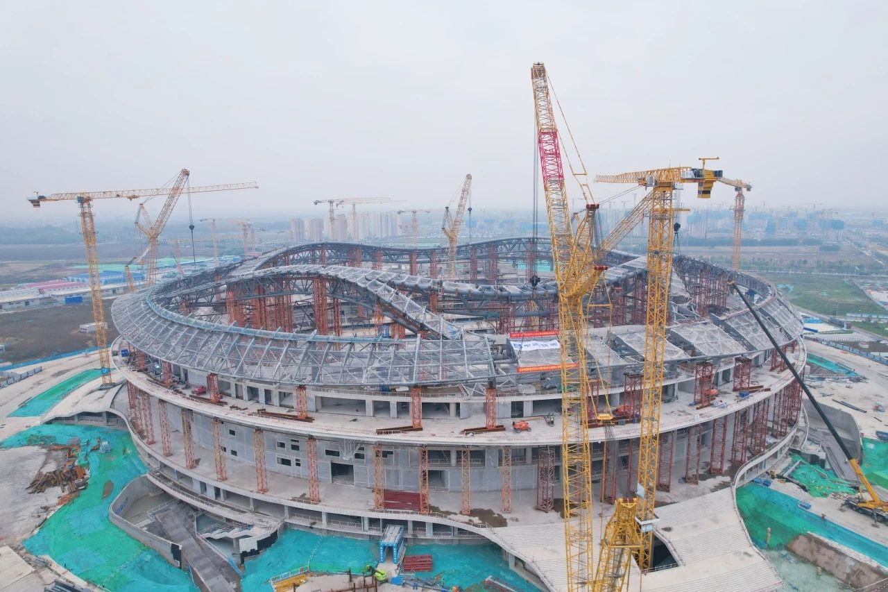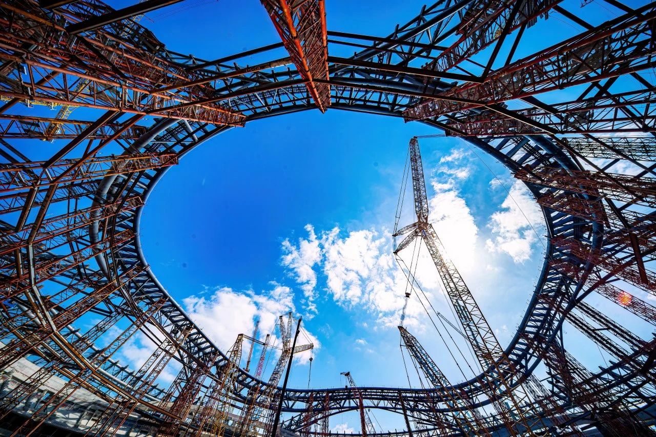 10月21日,隨著最后一榀百噸鋼桁架精準(zhǔn)入位,由濟(jì)南城市建設(shè)集團(tuán)受委托建設(shè)的黃河體育中心專業(yè)足球場項目屋蓋鋼結(jié)構(gòu)合攏,標(biāo)志著屋蓋鋼結(jié)構(gòu)主桁架完成,正式進(jìn)入屋蓋鋼結(jié)構(gòu)網(wǎng)架施工階段。