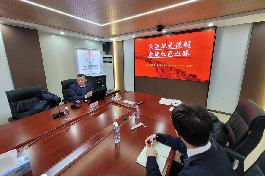 為大力弘揚(yáng)愛(ài)國(guó)主義光榮傳統(tǒng),銘記革命歷史、傳承紅色精神,1月3日,濟(jì)南城市建設(shè)集團(tuán)融港發(fā)展有限公司黨支部聯(lián)合中建八局二公司黨支部、濟(jì)南城建集團(tuán)建筑分公司黨支部、中鐵十四局機(jī)場(chǎng)項(xiàng)目黨支部在遙墻機(jī)場(chǎng)配套項(xiàng)目建設(shè)指揮部開(kāi)展“重溫抗美援朝,賡續(xù)紅色血脈”主題黨課活動(dòng)。
