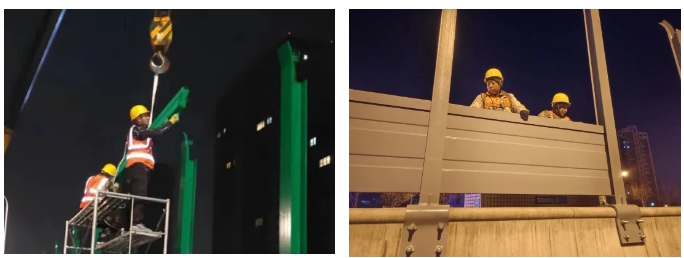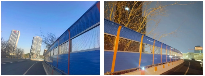 2023年濟(jì)南市聲屏障吸音降噪環(huán)保工程由建設(shè)集團(tuán)所屬山東金宇信息科技集團(tuán)有限公司承建,工程設(shè)計(jì)總長8478.06米,涉及工業(yè)北高架橋、北園高架橋、二環(huán)西高架橋、二環(huán)南高架橋、緯六路高架橋、燕山立交橋、白馬山隧道等路段。施工內(nèi)容包含2.233m、2.5m、2.683m高直弧形聲屏障以及3.5m高直弧形聲屏障、3.5m高頂部帶吸聲筒形聲屏障,部分聲屏障基礎(chǔ)采用騎馬鋼板形式、部分聲屏障基礎(chǔ)采用植入化學(xué)錨栓形式。該項(xiàng)目于2023年8月15日開工,歷時(shí)214天,于2024年3月15日竣工。