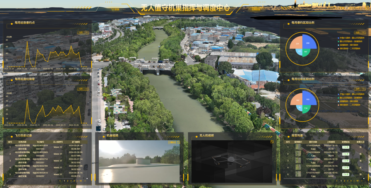 該機巢布置于湖心島,可對華山景區(qū)水面、綠化共計6.25平方公里的區(qū)域進行日常巡檢。該機巢具備無人機定時自動收放、飛行、充電功能,徹底實現(xiàn)無人化值守,支持對無人機及載荷遠程控制。同時,自主巡檢系統(tǒng)通過AI算法,對無人機獲取的低空原始數(shù)據(jù)定位分析,如發(fā)現(xiàn)問題,經(jīng)管理專員核查后,可通過業(yè)務處理平臺app派發(fā)至運營人員銷項處理。