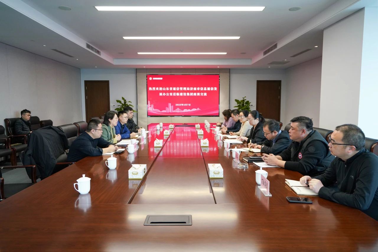 近日,山東省通信管理局濟(jì)南市信息通信發(fā)展辦公室主任助理徐宏一行到訪建設(shè)集團(tuán),就工程項(xiàng)目中通信管道建設(shè)、運(yùn)營(yíng)、管理等情況進(jìn)行座談交流。建設(shè)集團(tuán)城市開(kāi)發(fā)部、建設(shè)管理部、工程一部、工程四部、市政資產(chǎn)公司、萬(wàn)融產(chǎn)業(yè)發(fā)展集團(tuán)相關(guān)業(yè)務(wù)負(fù)責(zé)同志參加會(huì)議。