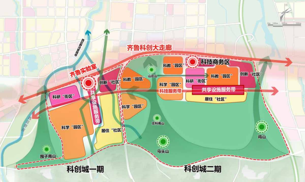 中科院科創(chuàng)城位于濟(jì)南市規(guī)劃的齊魯科創(chuàng)大走廊,是未來產(chǎn)業(yè)創(chuàng)新圈的重要組成部分,與產(chǎn)研院創(chuàng)新圈、超算中心創(chuàng)新圈、山東大學(xué)創(chuàng)新圈共同構(gòu)建“基礎(chǔ)創(chuàng)新+技術(shù)創(chuàng)新+轉(zhuǎn)化應(yīng)用”的創(chuàng)新生態(tài)鏈。其中,一期重點布局重大科技基礎(chǔ)設(shè)施、前沿交叉研究平臺及國家級、省級實驗室;二期則突出科技賦能轉(zhuǎn)化,加強(qiáng)與大院大所合作,建設(shè)新型研發(fā)機(jī)構(gòu)和科創(chuàng)載體,助力濟(jì)南創(chuàng)建“綜合性國家科學(xué)中心”核心承載區(qū)。項目秉持“開放集聚、融合共享”的理念,統(tǒng)籌科研、生活和生態(tài)空間,形成“科創(chuàng)引領(lǐng)、組團(tuán)共融、生態(tài)共享”的總體結(jié)構(gòu),通過科學(xué)合理的功能分區(qū)和創(chuàng)新生態(tài)鏈的構(gòu)建,為濟(jì)南市的科技創(chuàng)新和產(chǎn)業(yè)升級提供強(qiáng)大支撐,成為推動區(qū)域高質(zhì)量發(fā)展的新引擎。