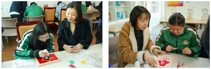 活動(dòng)現(xiàn)場(chǎng),志愿者們首先參觀了驛站設(shè)施,通過(guò)與殘疾人交流,深入了解殘疾人群體需求。在隨后的互動(dòng)環(huán)節(jié)中,志愿者們與殘疾人共同觀看雷鋒故事短片,進(jìn)一步弘揚(yáng)新時(shí)代雷鋒精神,同時(shí)與殘疾人朋友分組合作,以大米、紅豆等糧食為材料,共同創(chuàng)作“雷鋒主題創(chuàng)意畫(huà)”。志愿者們耐心傾聽(tīng)、細(xì)致協(xié)助,以實(shí)際行動(dòng)踐行“奉獻(xiàn)、友愛(ài)、互助、進(jìn)步”的志愿精神。